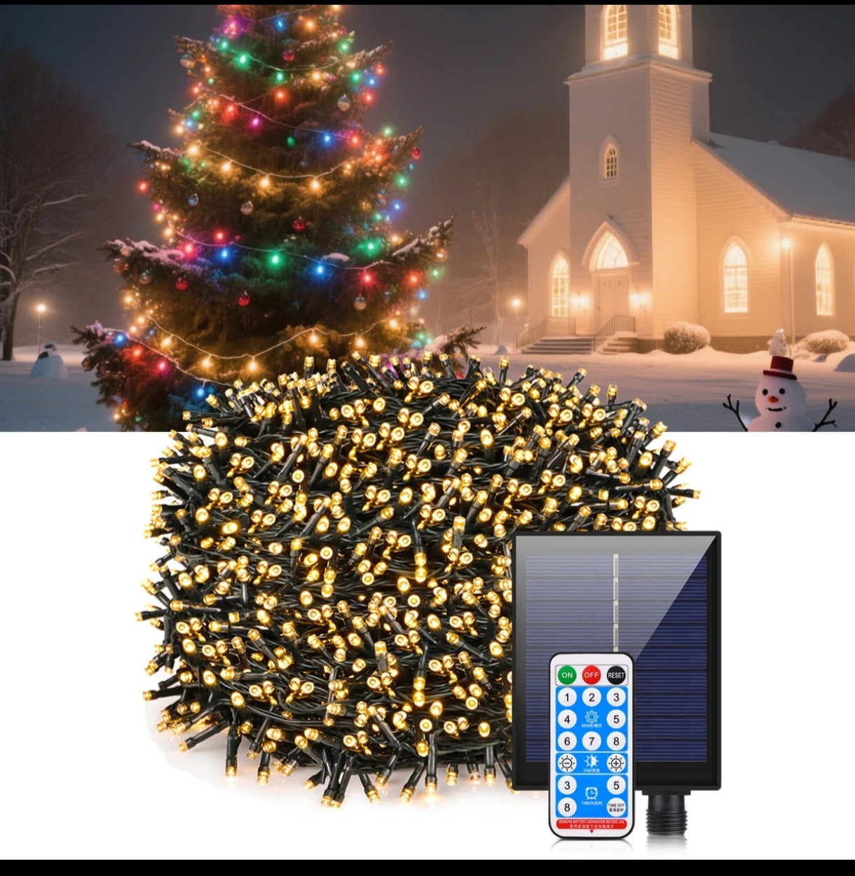 Nuo saulės baterijos veikiančios lauko LED lemputės 50m šviesos grandinė, skirta Kalėdų , atostogų ,sodo medžio dekorui, atsparios vandeniui.