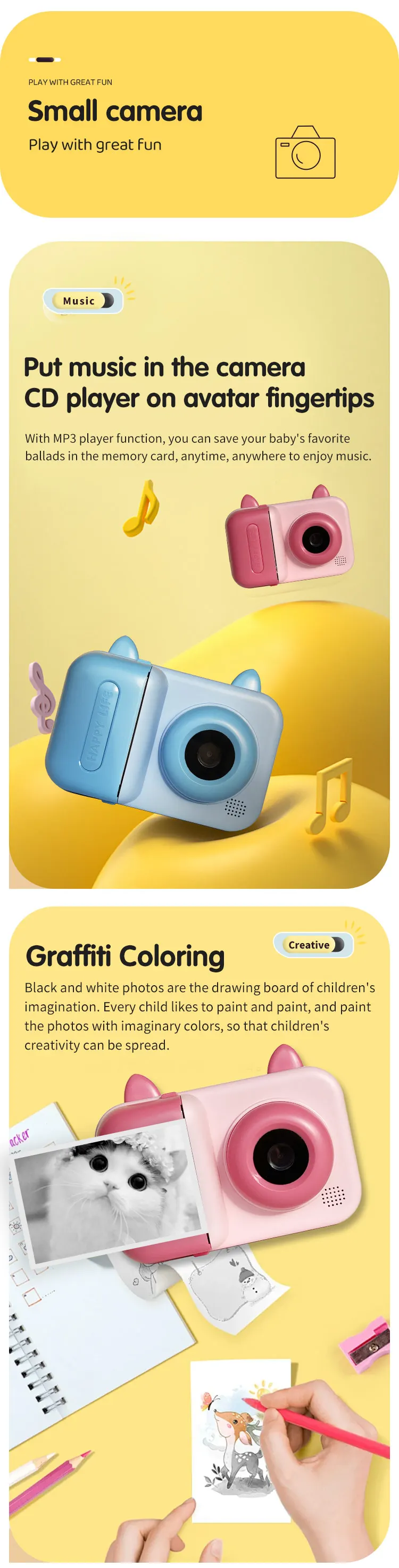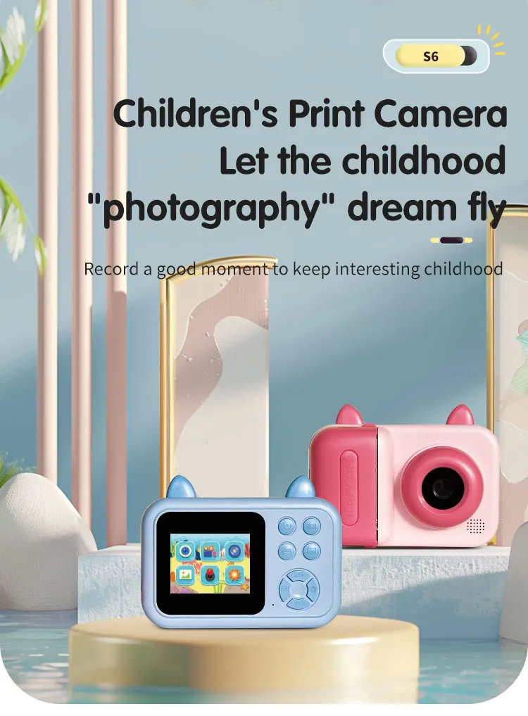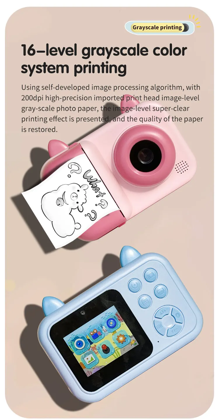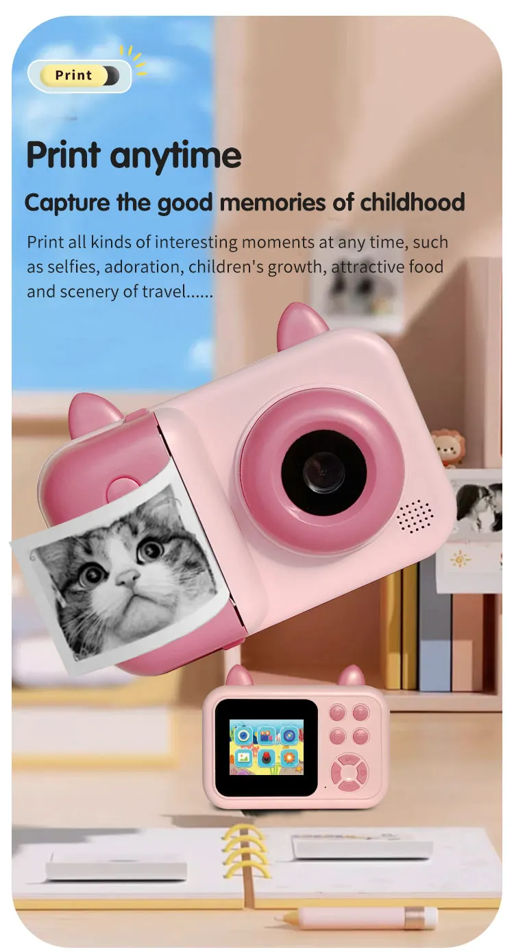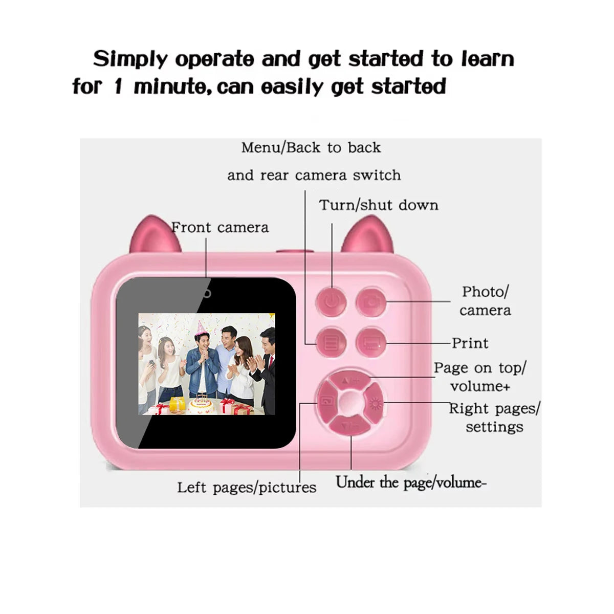 Momentinis spausdintuvas vaikams su fotoaparatu, 1080P vaikiški momentiniai fotoaparatai. Kalėdų ar gimtadienio dovana